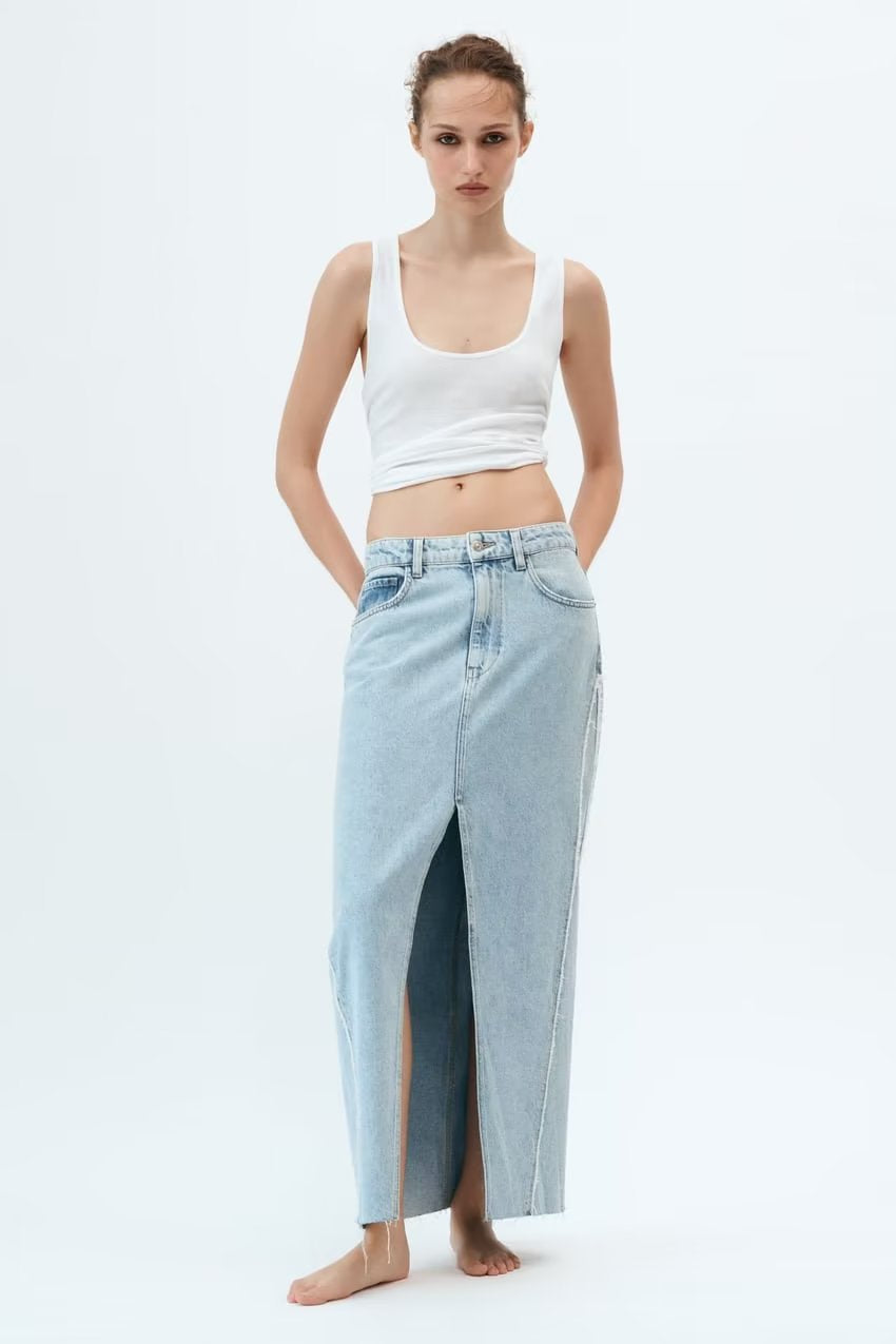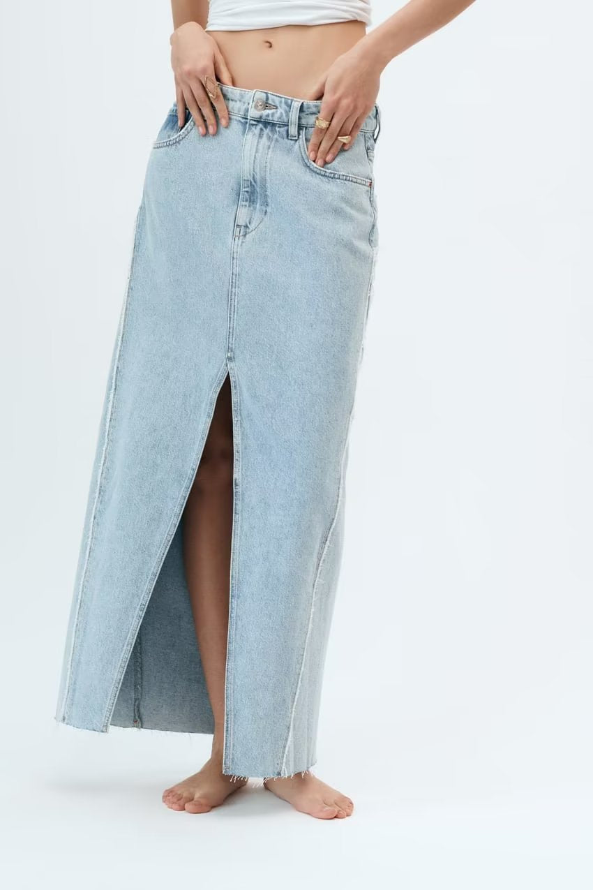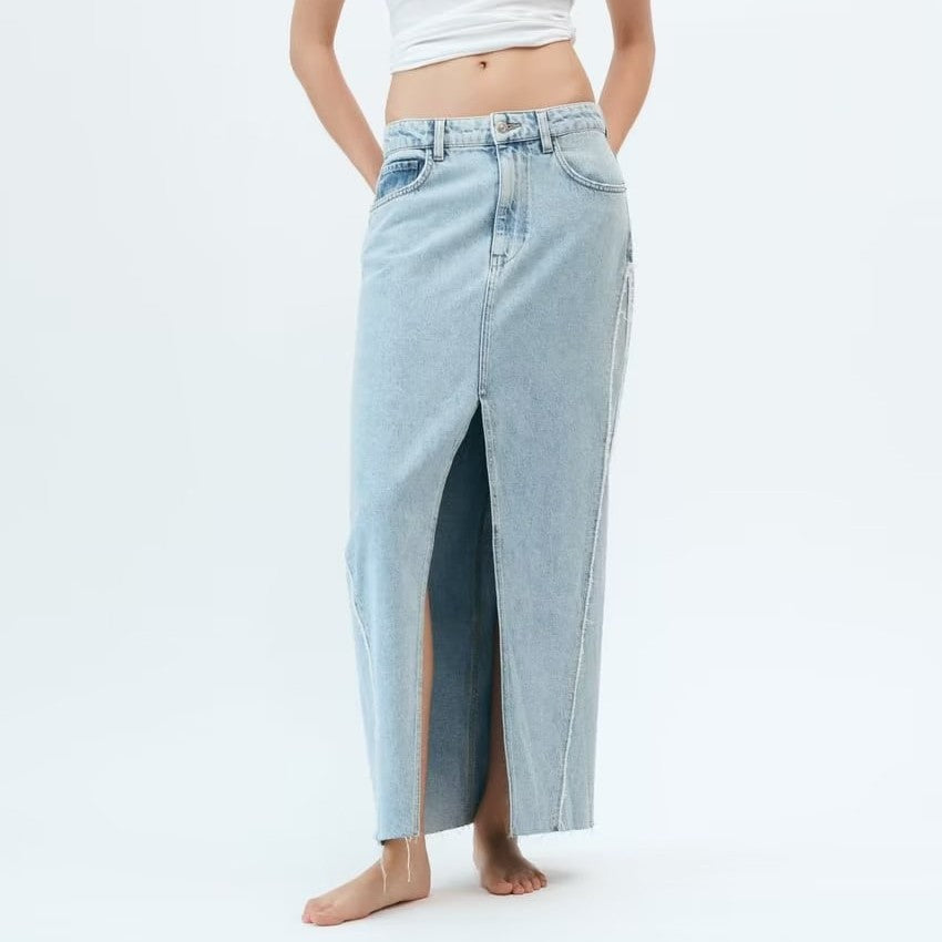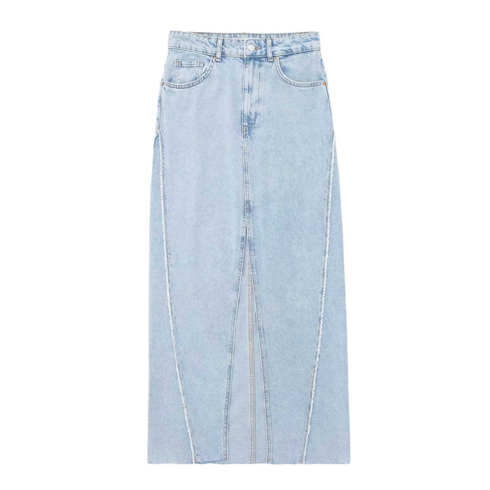 Wholesale Summer Raw Edge Denim Midi Dress Hip Skirt Skirt