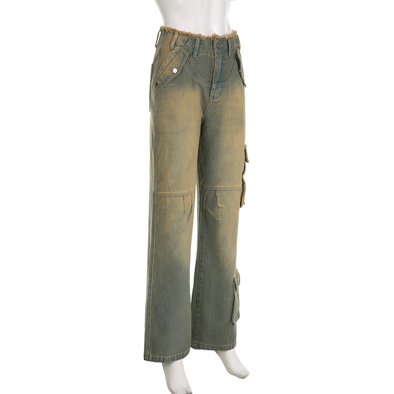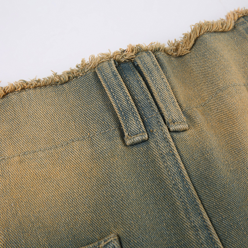 Women's Asymmetric Retro Raw Hem Jeans Straight-leg Overalls