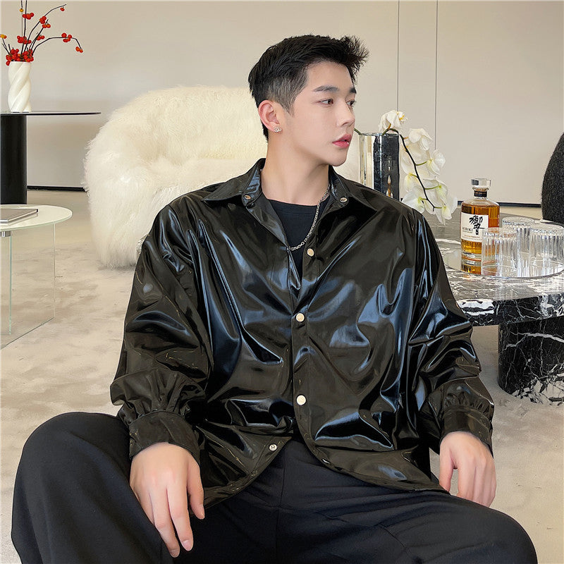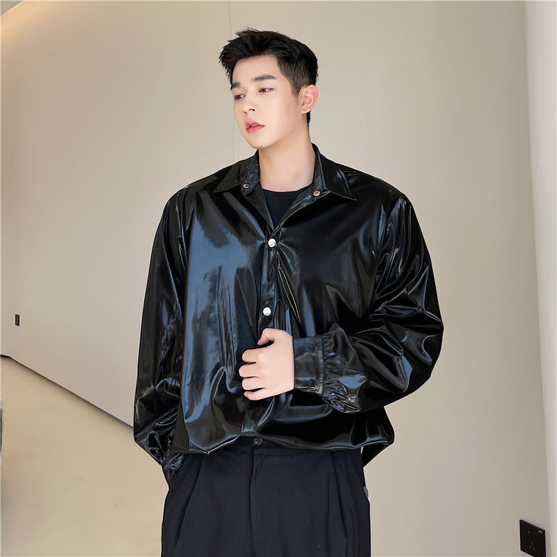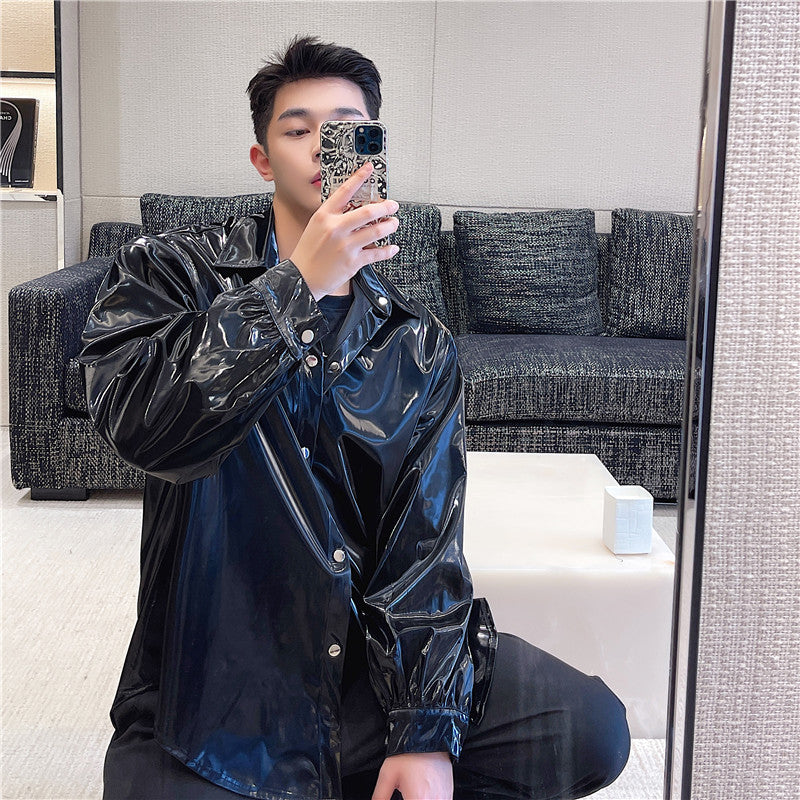 Bright Face Black Loose Fashion Coat