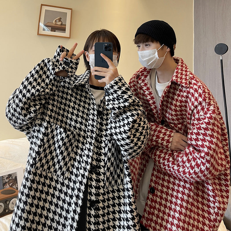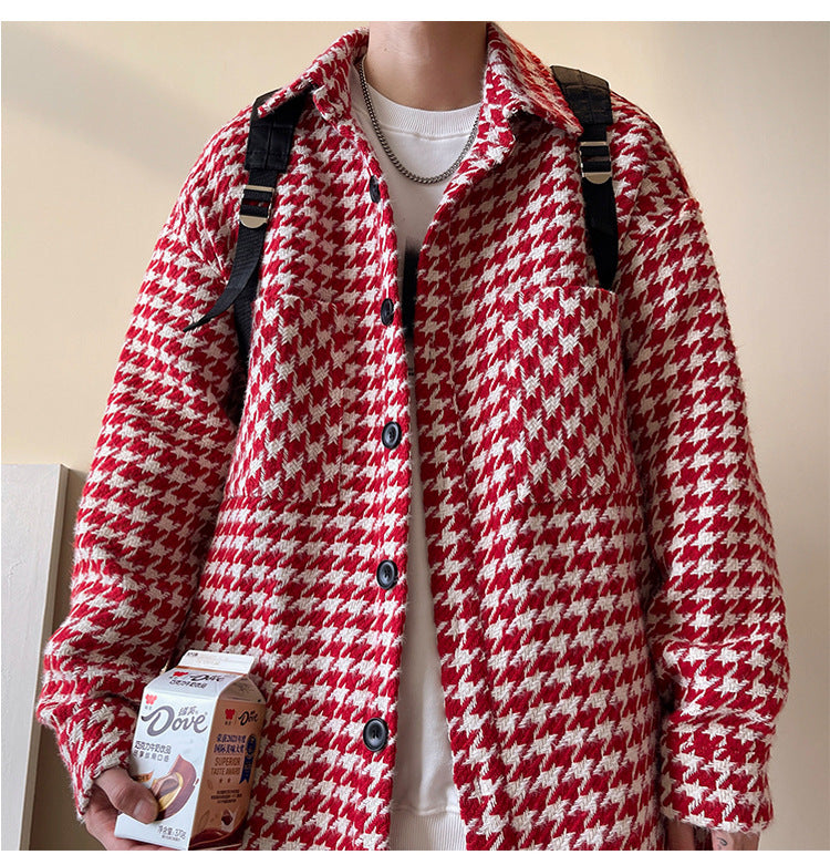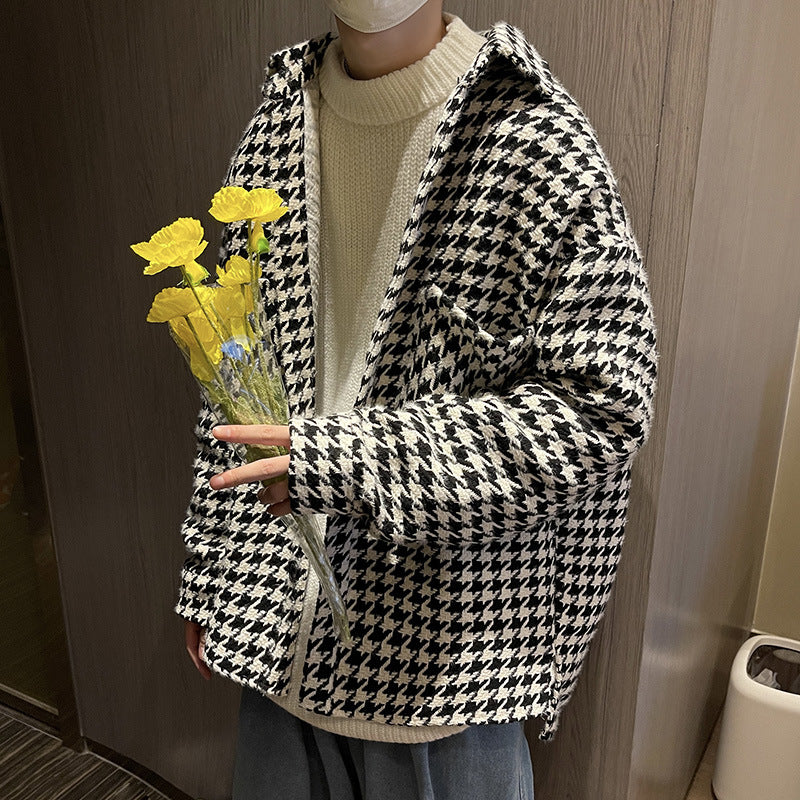 Men's Casual Woolen Jacket Hong Kong Style Ing Trend Fashion Houndstooth