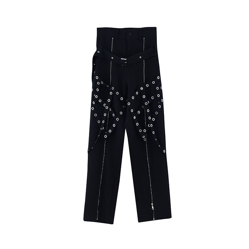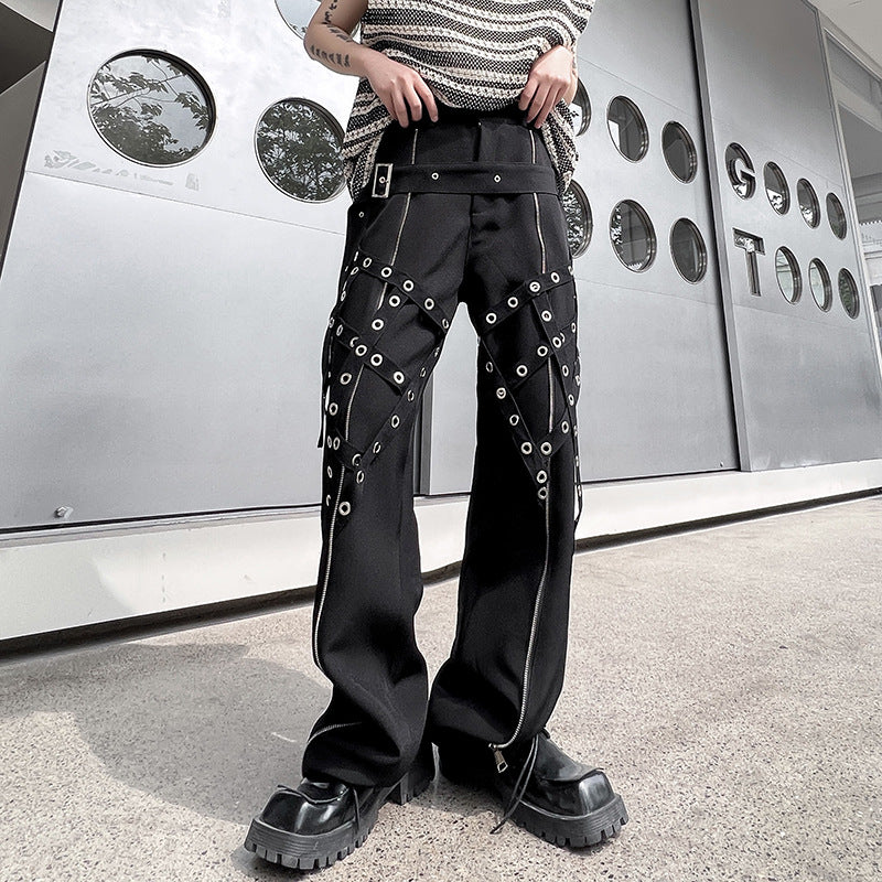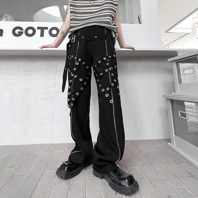 Men's Fashion Casual Irregular Studded Straps Function Work Pants