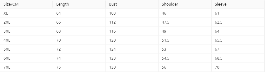 Size: M,L,XL,XXL,XXL,XXXXL,5XL,6XL,7XL,8XL