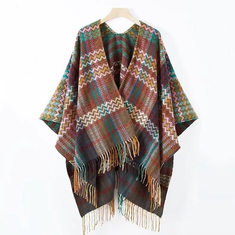 Colors: Red (sleeve shawl), Green (sleeve shawl), Camel (sleeve shawl), Khaki (sleeve shawl), Pink (sleeve shawl), Dark Yellow (sleeve shawl)