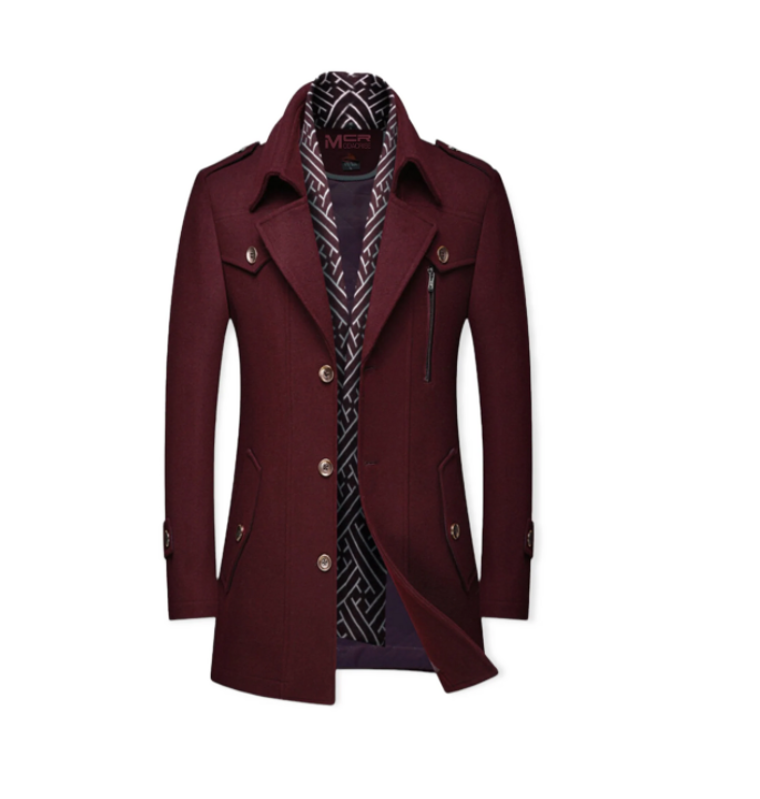 Features: solid color, double collar, single breasted